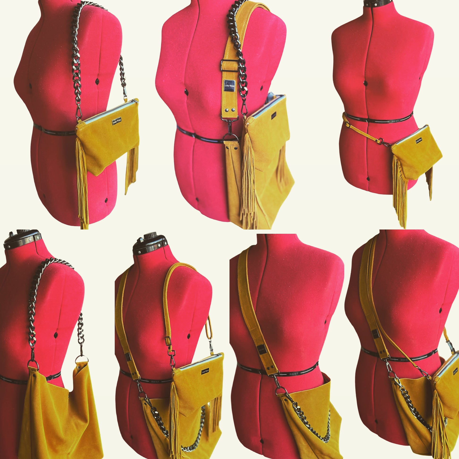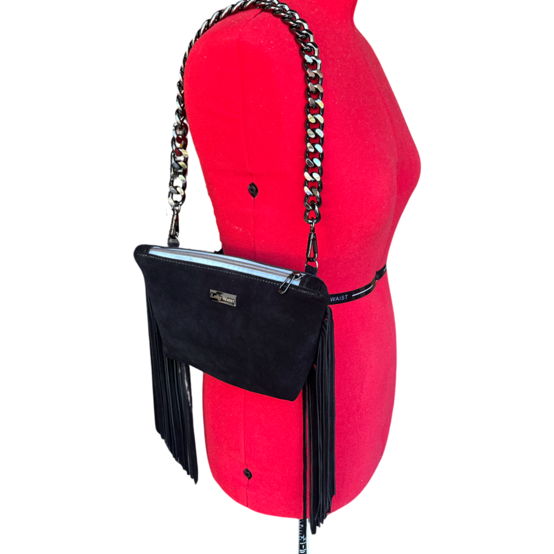Perfect for your daily grind or a night out on the town. Add a splash of color to any look with this high quality leather purse. This premium suede leather has a luxurious look and feel paired with high quality gun-metal black hardware and zippers. Strap is adjustable to fit your personal style. Over the shoulder, crossbody or around the waist. Switch to the bulky chain strap for a more elegant look and a little sparkle. Inside zipper pocket because we love pockets! Handmade with love in San Diego, CA.