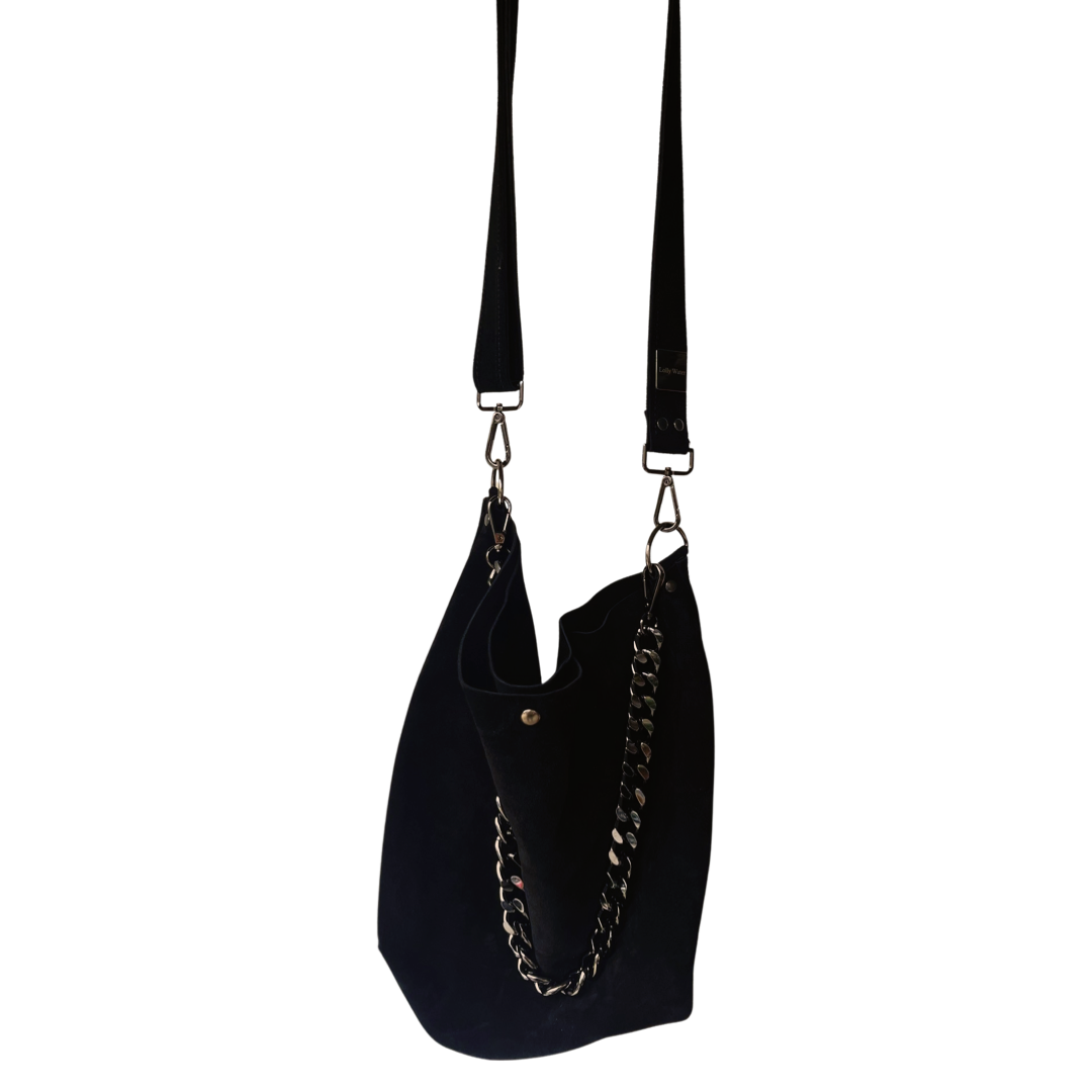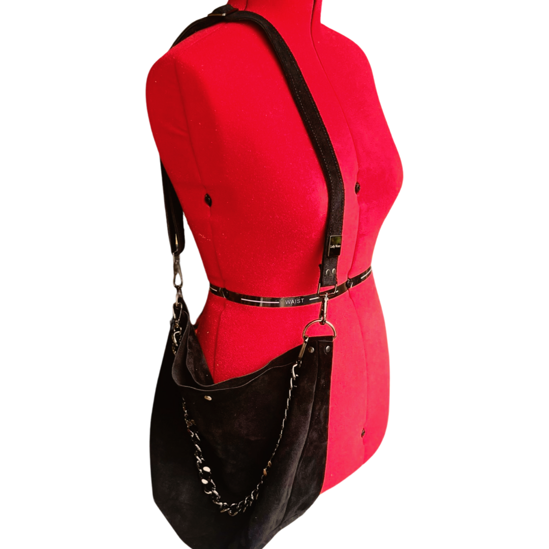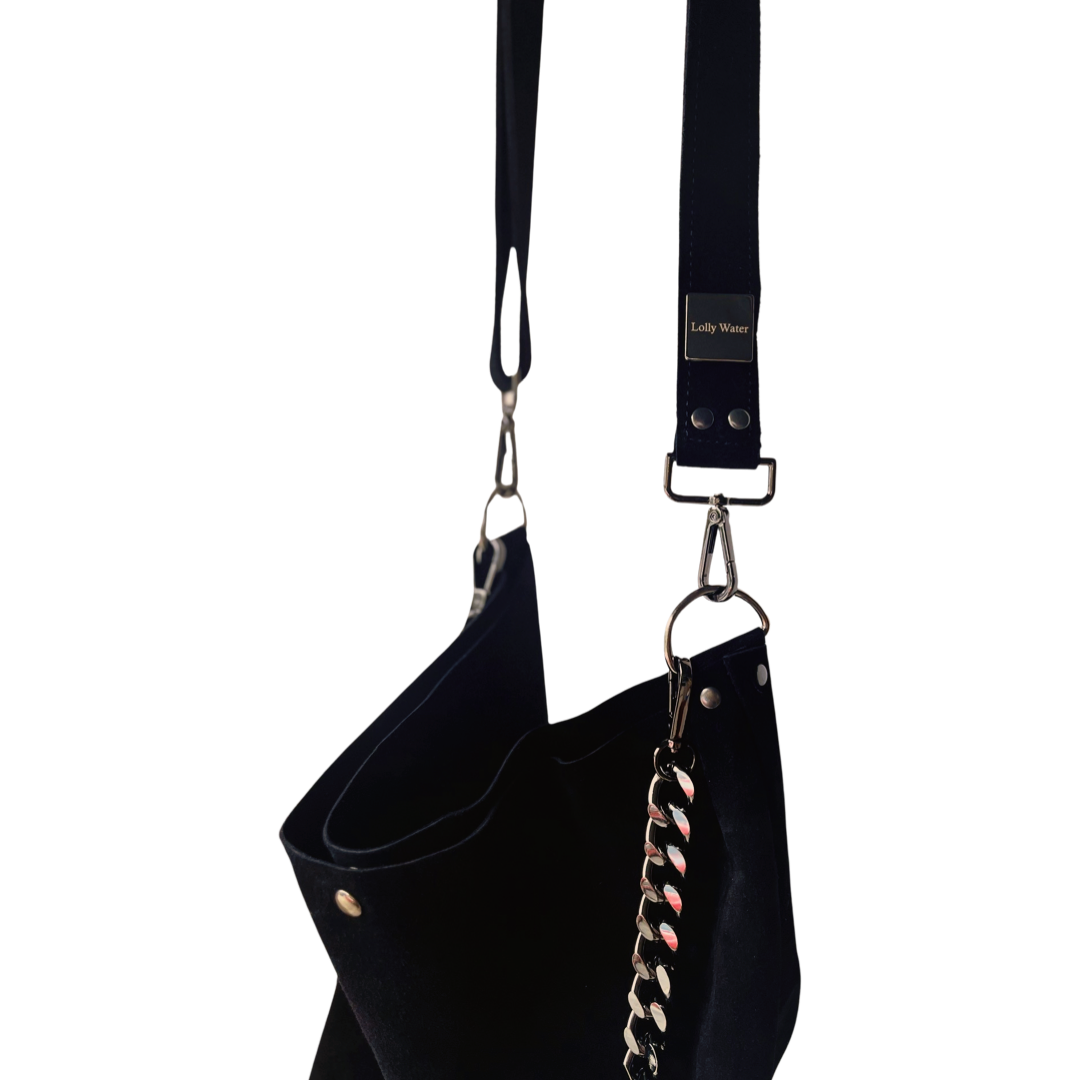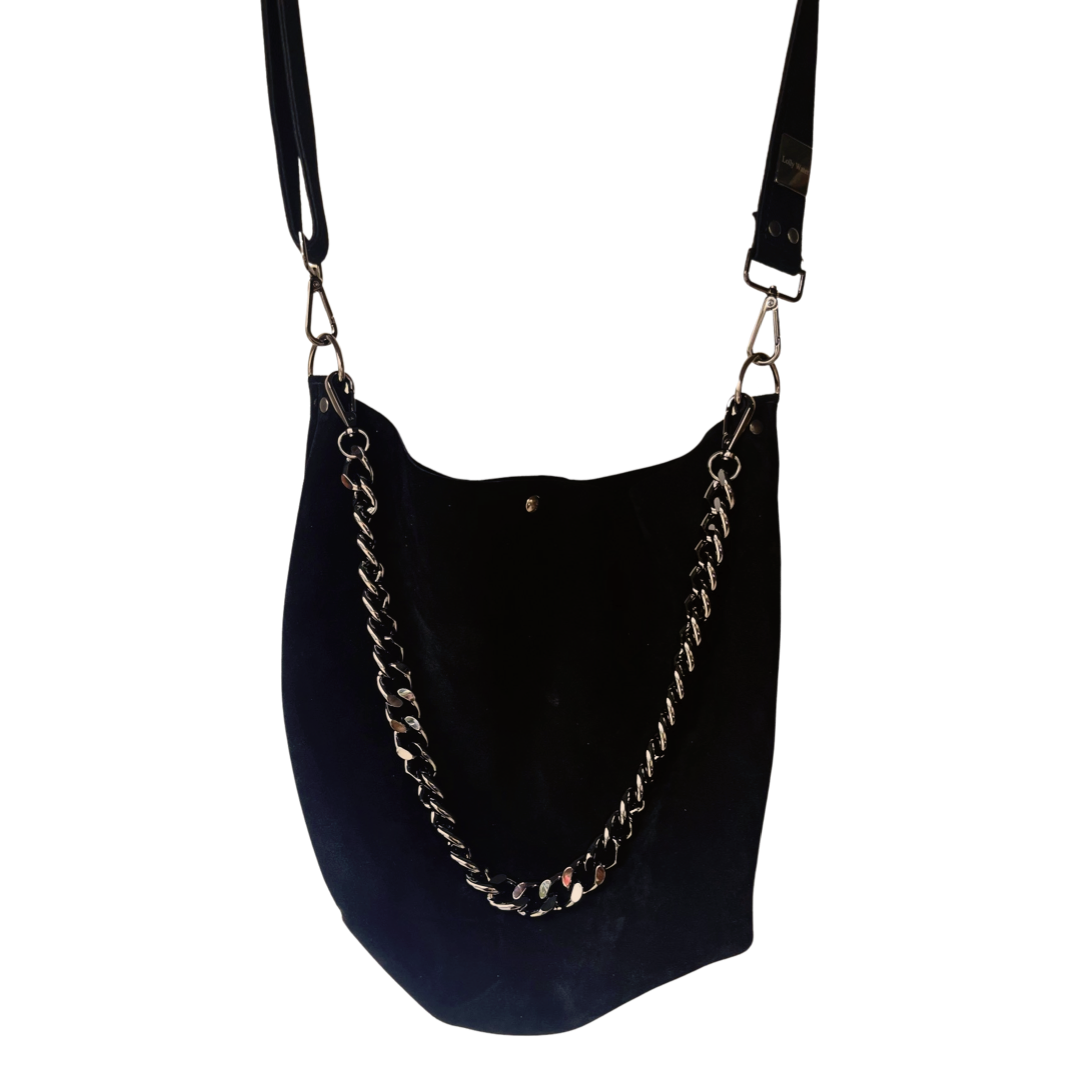 Boho meets Luxury! Add a splash of color to any look with this high quality leather purse. This premium suede leather has a luxurious look and feel paired with high quality gun-metal black hardware. Strap is adjustable to fit your personal style. Over the shoulder or crossbody. Chain can be used decoratively adding extra sparkle or as an alternative shoulder strap for a more refined look. Big enough to carry everything you need for the day but not big enough to be cumbersome. Handmade with love in San Diego, CA.