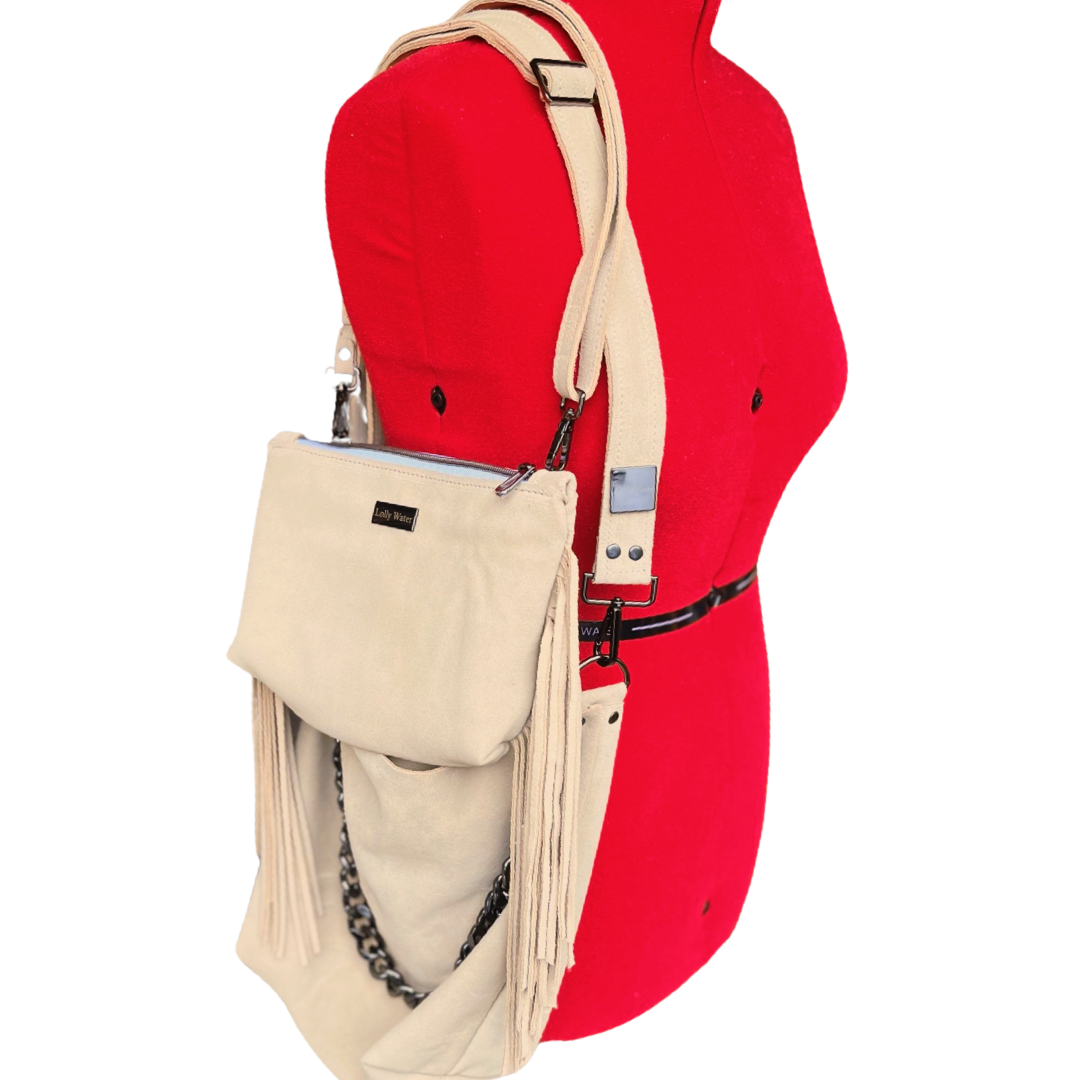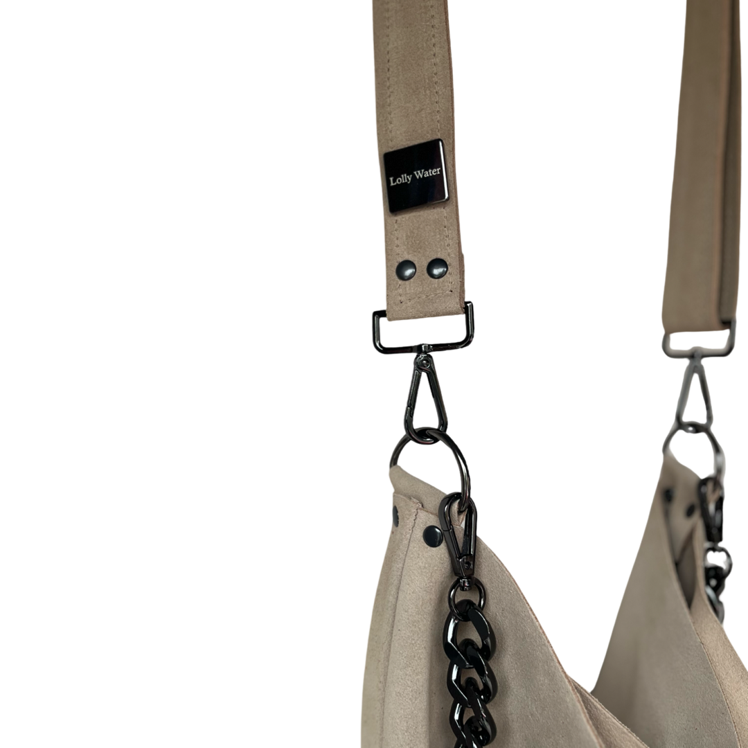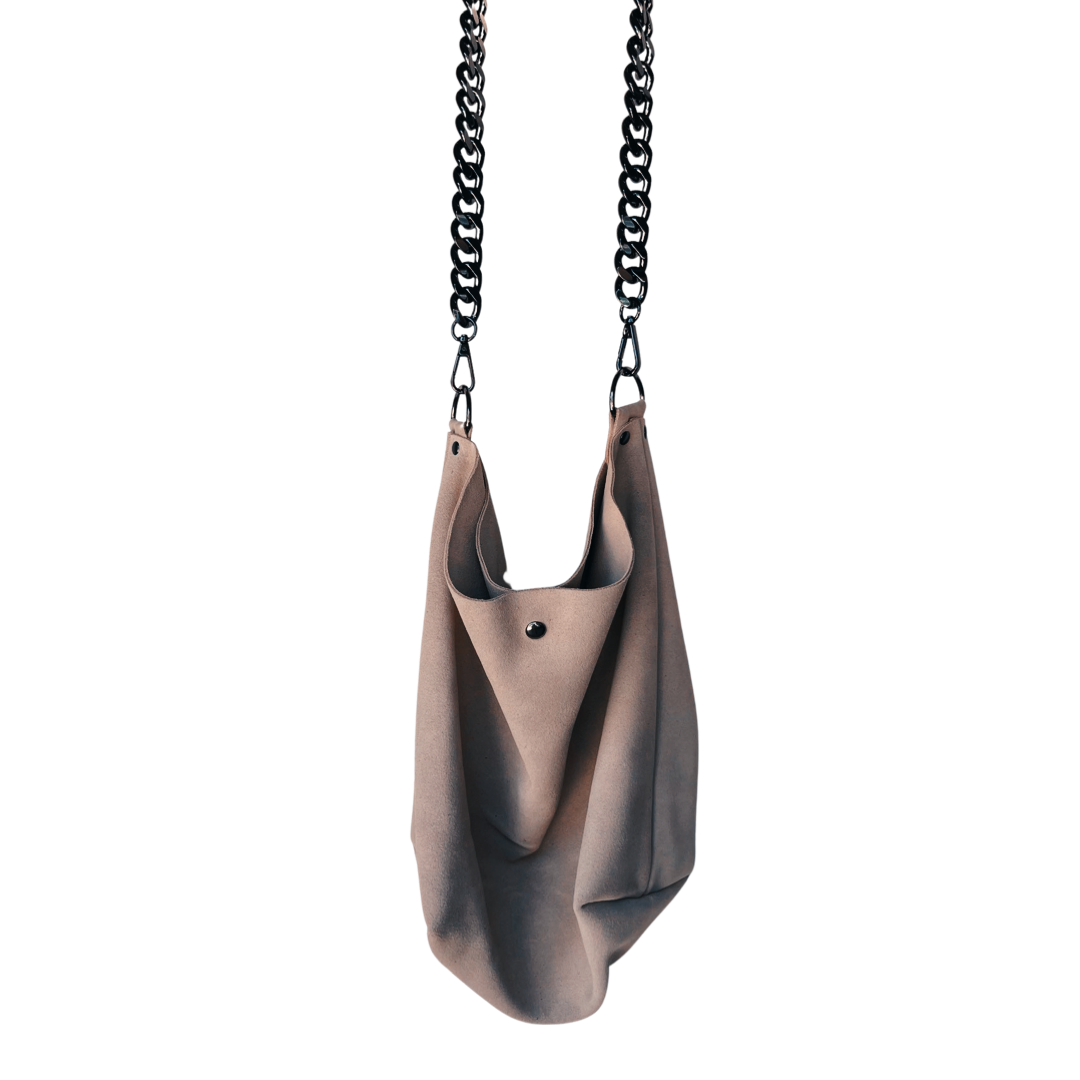 Boho meets Luxury!  Add a splash of color to any look with this high quality leather purse. This premium suede leather has a luxurious look and feel paired with high quality gun-metal black hardware. Strap is adjustable to fit your personal style. Over the shoulder or crossbody. Chain can be used decoratively adding extra sparkle or as an alternative shoulder strap for a more refined look. Big enough to carry everything you need for the day but not big enough to be cumbersome. Handmade with love in San Diego, CA.