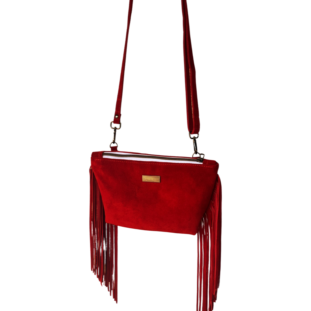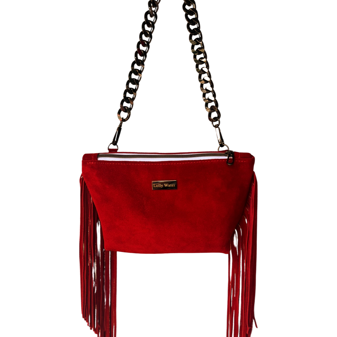 Perfect for your daily grind or a night out on the town. Add a splash of color to any look with this high quality leather purse. This premium suede leather has a luxurious look and feel paired with high quality gun-metal black hardware and zippers. Strap is adjustable to fit your personal style. Over the shoulder, crossbody or around the waist. Switch to the bulky chain strap for a more elegant look and a little sparkle. Inside zipper pocket because we love pockets! Handmade with love in San Diego, CA.