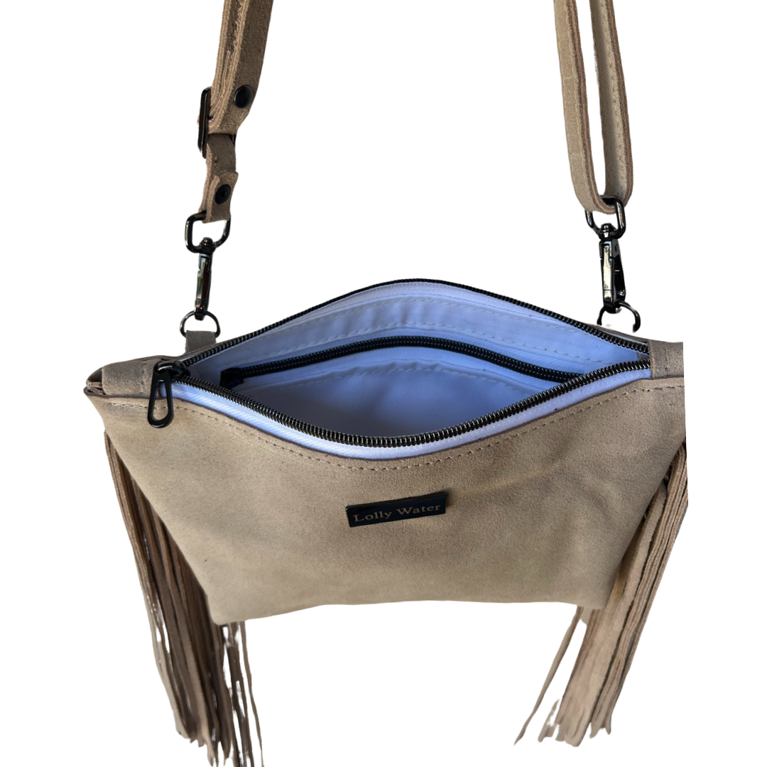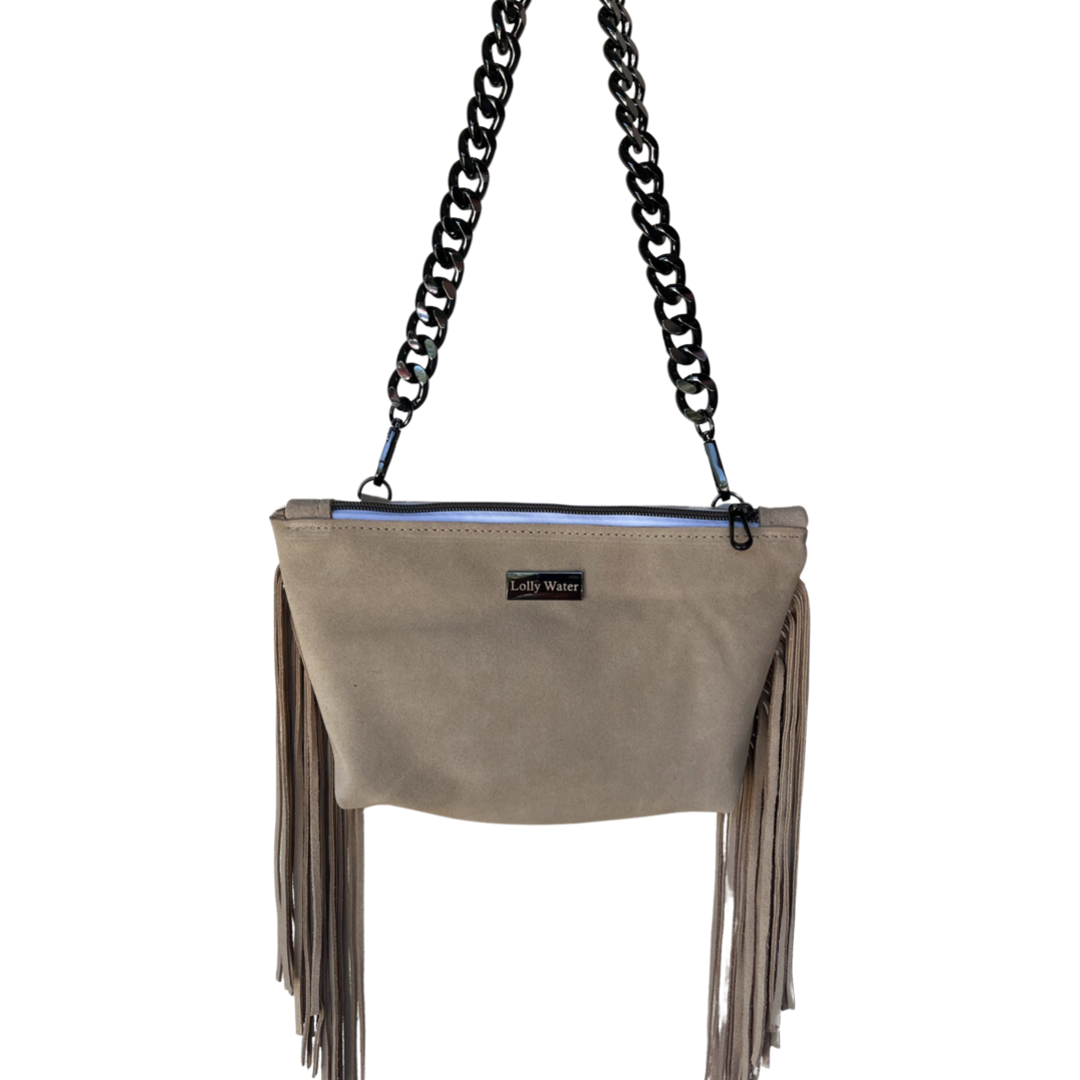 Perfect for your daily grind or a night out on the town. Add a splash of color to any look with this high quality leather purse. This premium suede leather has a luxurious look and feel paired with high quality gun-metal black hardware and zippers. Strap is adjustable to fit your personal style. Over the shoulder, crossbody or around the waist. Switch to the bulky chain strap for a more elegant look and a little sparkle. Inside zipper pocket because we love pockets! Handmade with love in San Diego, CA.